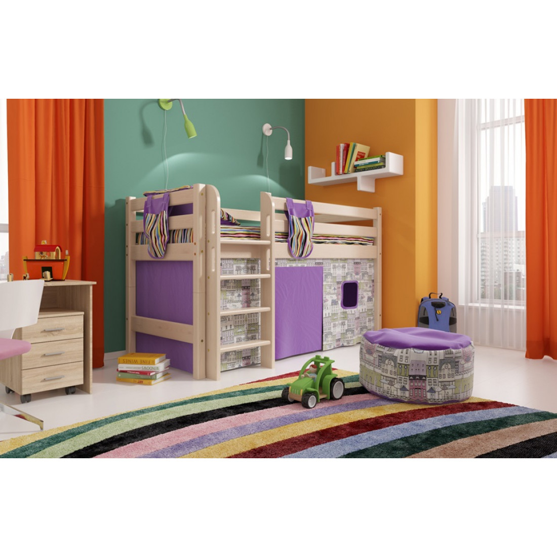 Кровать Соня Лаванда полувысокая вариант 6 с наклонной лестницей