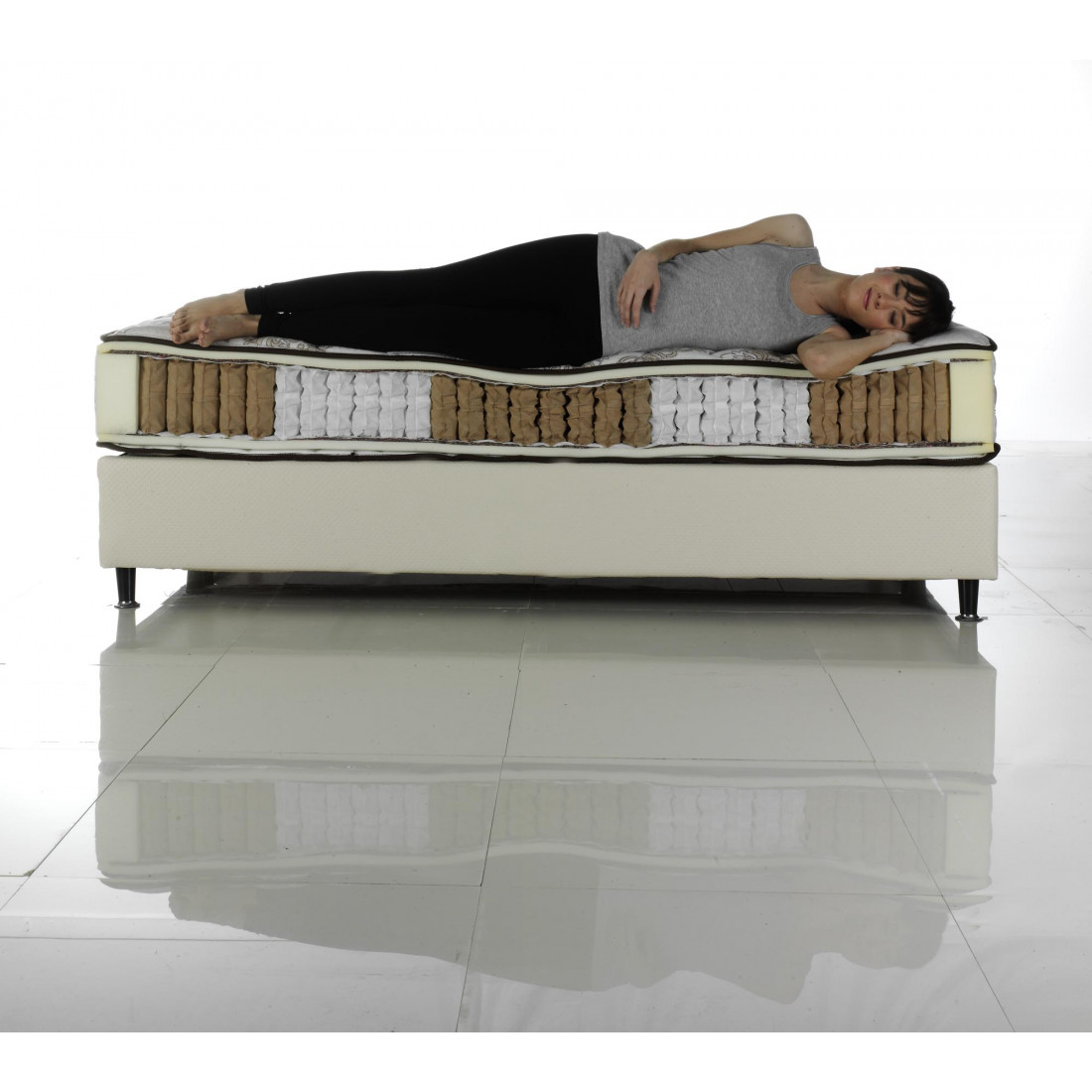 Матрасы BODY FORM 7 с семью степенями жесткости. Разные степени жесткости пружин на каждой секйии позволяют повторять изгибы вашего тела, давая возможность принять правильное положение вашего позвоночника, предоставляя вам максимальный комфорт.
