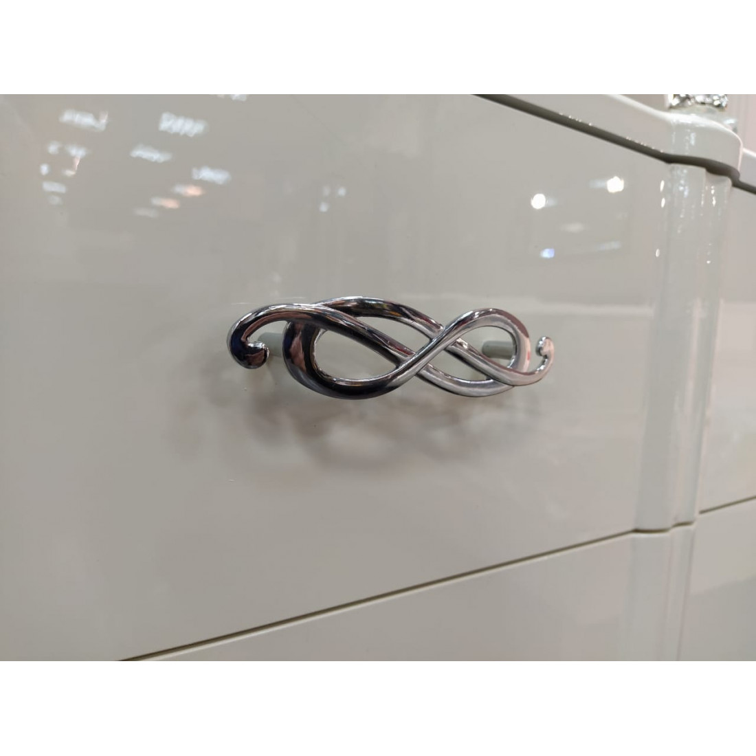 - Ручки – металлические, фигурной формы, перекликающейся с рисунком фрезеровки.