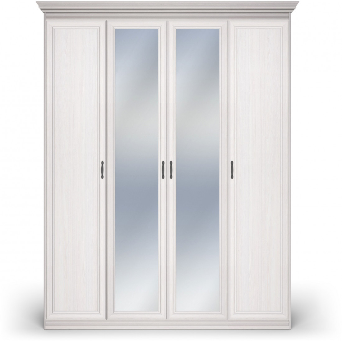 Шкаф 4-х дверный зеркальный Неаполь Ясень анкор светлый (патина "серебро")