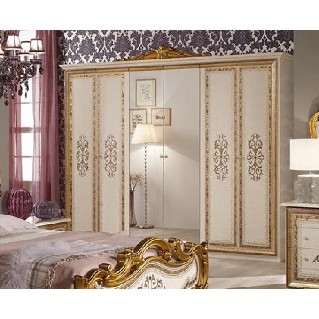 Спальня Анита (беж) композиция 2 от Российской фабрики "ДИА мебель". Выполнена в бежевом цвете с отделкой золотых фасадов. Такой дизайн поможет Вам расслабиться после рабочего дня и насладиться прекрасной атмосферой. Классический стиль придают интерьеру неповторимую роскошь. Изгибающие линии кровати и зеркала придадут легкость и воздушность в спальне. Коллекция "Анита" придаст вашей спальне экстравагантность, и принесет свежие нотки в Ваш дом.