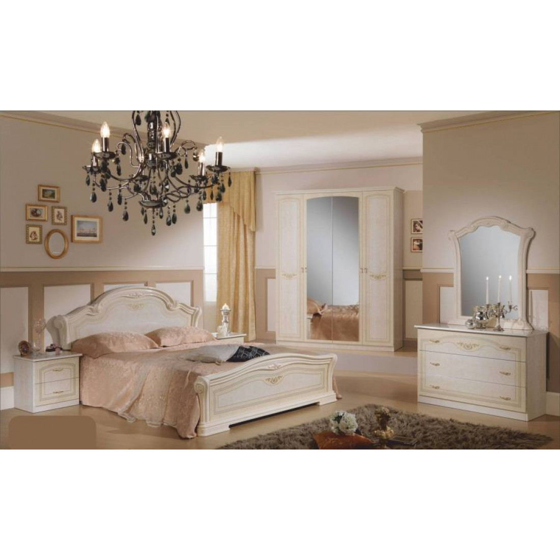 Спальня Ирина (беж) от Российской фабрики «ДИА мебель» выполнена в элегантном бежевом цвете в сочетании с глянцевым покрытием. Такая спальня поможет Вам насладиться прекрасным сном, забыть обо всех проблемах и окунуться в атмосферу роскоши и комфорта. Все модули этой композиции украшены резными вставками и росписью на фасаде. Без шумные дверцы и полки помогут вам забыть про неприятный шум по утрам. Коллекция "Ирина" предназначена для настоящих ценителей классического стиля.
