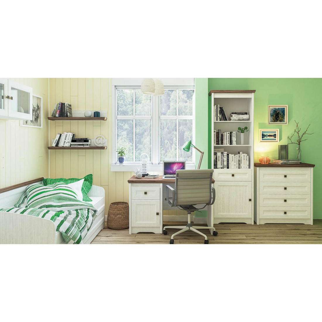 В композиции мебели для спальни Тиволи присутствуют все элементы, которые призваны обеспечивать комфорт и максимум удобства своим хозяевам: эргономичная тумба, высокая многофункциональная тумба, застекленный шкаф, открытые навесные полки. При желании можно купить модульную спальню Тиволи, укомплектовав другими элементами серии.
