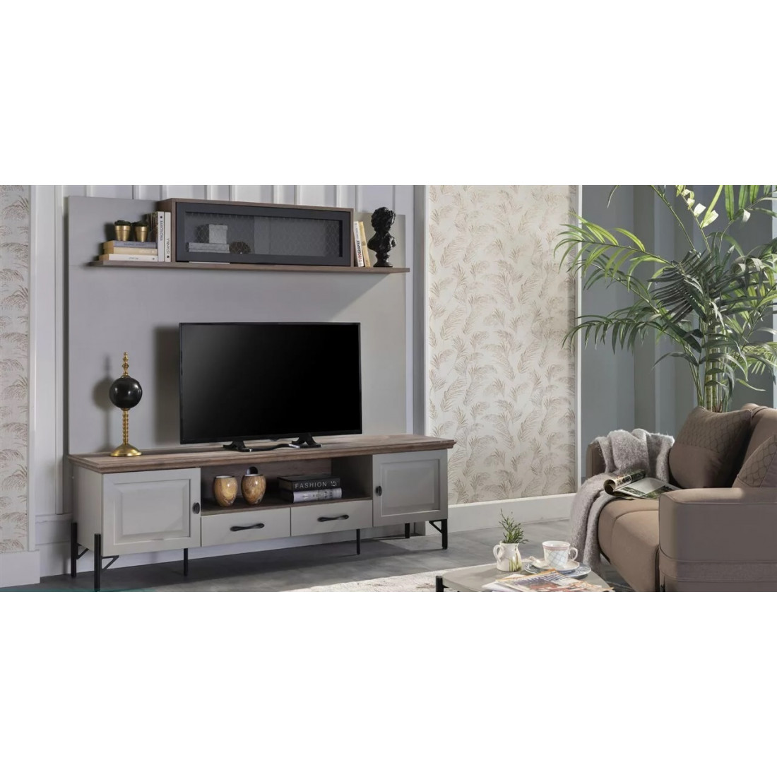 Многофункциональная стенка под TV "Палвин". Шикарная стенка турецкого производства. На нее можно поставить телевизор размером в 55 дюймов. Есть место для DVD плеера и игровой приставки. Все вещи будут на своих местах, что не может не радовать. Навесной шкафчик можно вешать с любой стороны.