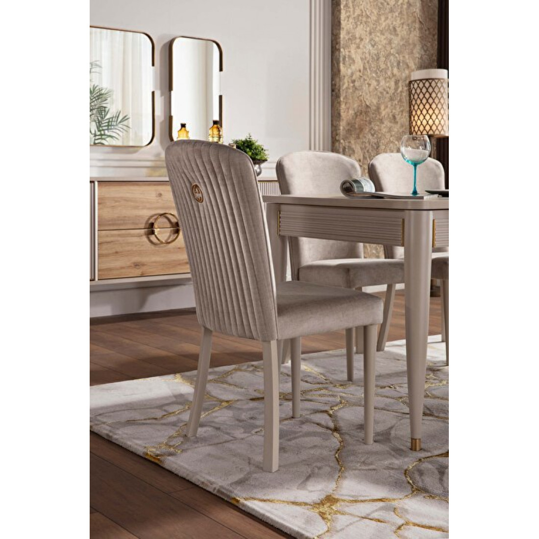 Комплект из двух стульев Sanvito в стилистике всей коллекции. В дизайне присутствуют вертикальные линии, цветовая гамма — кремовая. Стулья имеют мягкое сидение и спинку. Они замечательно сочетаются со столом Sanvito и с другой мебелью данной серии.