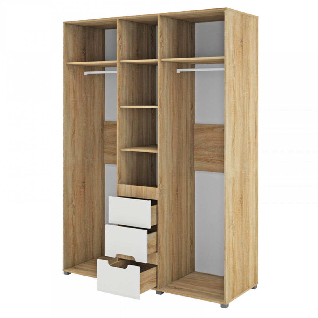 Трехстворчатый шкаф для одежды и белья с зеркалом в спальню Леонардо МН-026-08