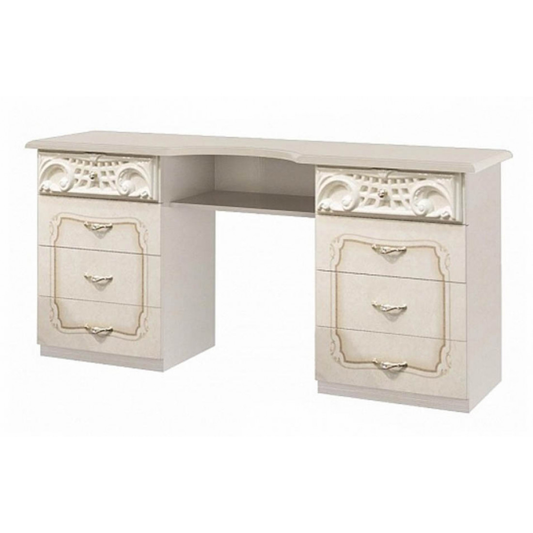 Туалетный столик Роза ТС 160 (беж) от фабрики ДИА мебель выполнен в классическом стиле. Бежевый цвет в сочетании с глянцевым покрытием придаст вашей спальне больше элегантность и эстетичность. Такой столик не займет много места и будет незаменим в вашей спальной комнате. Большие и прочные ножки делают его неподвижным и соответственно устойчивым.