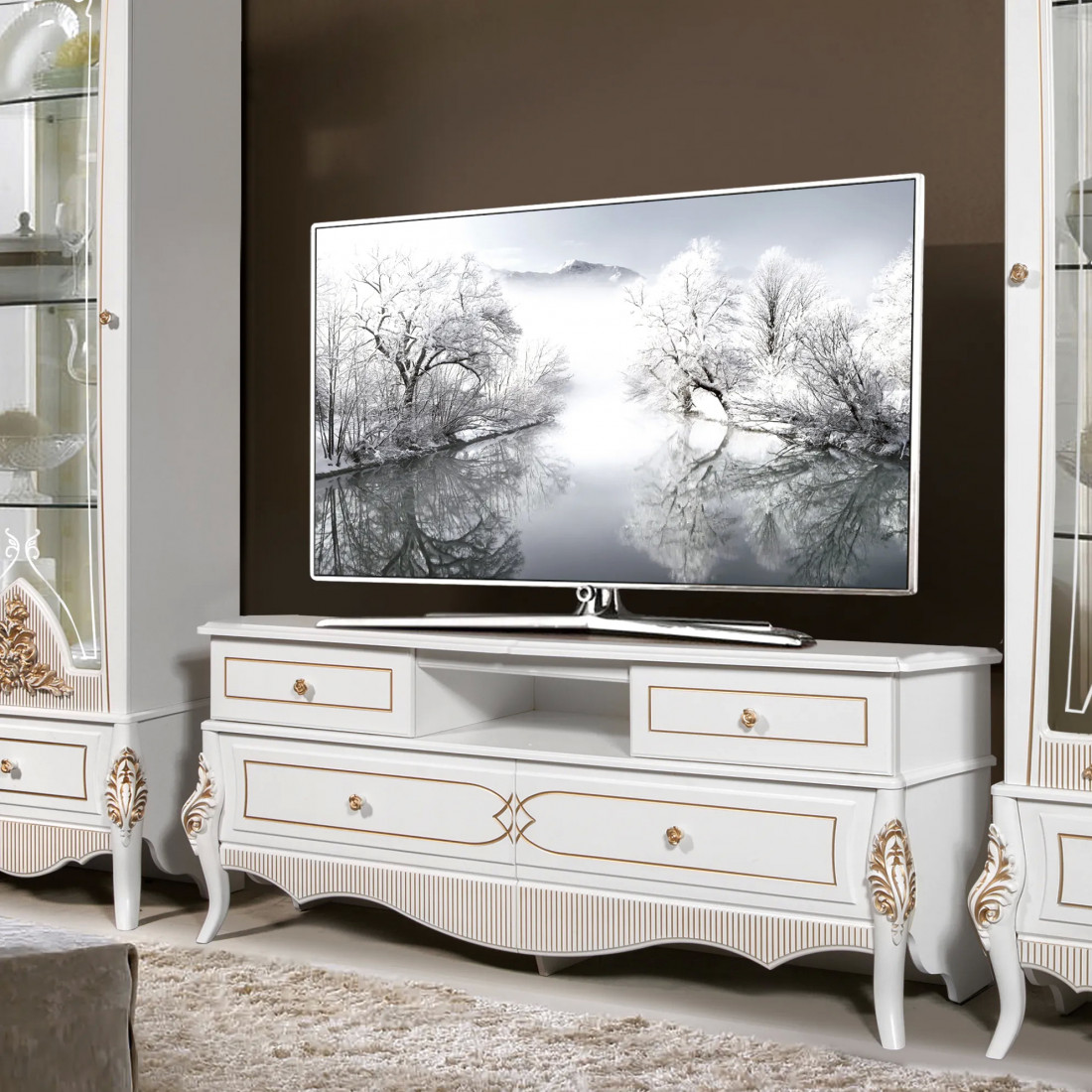 Тумба под тв гостиную Стелла (белый золото)