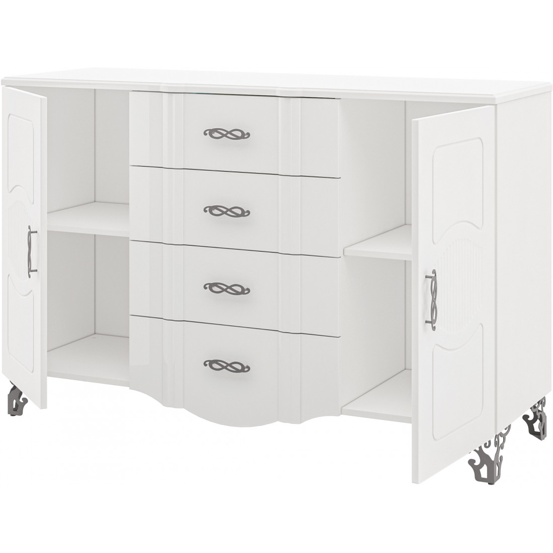 Тумба МН-025-19 серии София фабрики Мебель-Неман (Белоруссия) – гармоничное сочетание ультрасовременной лаконичности и изящества классических пропорций. Нежный кремовый оттенок глянца в сочетании с хромированным ажуром ручек и легких изящных ножек смотрится свежо и необычно. Купить классическую тумбу под телевизор София можно по доступной цене.