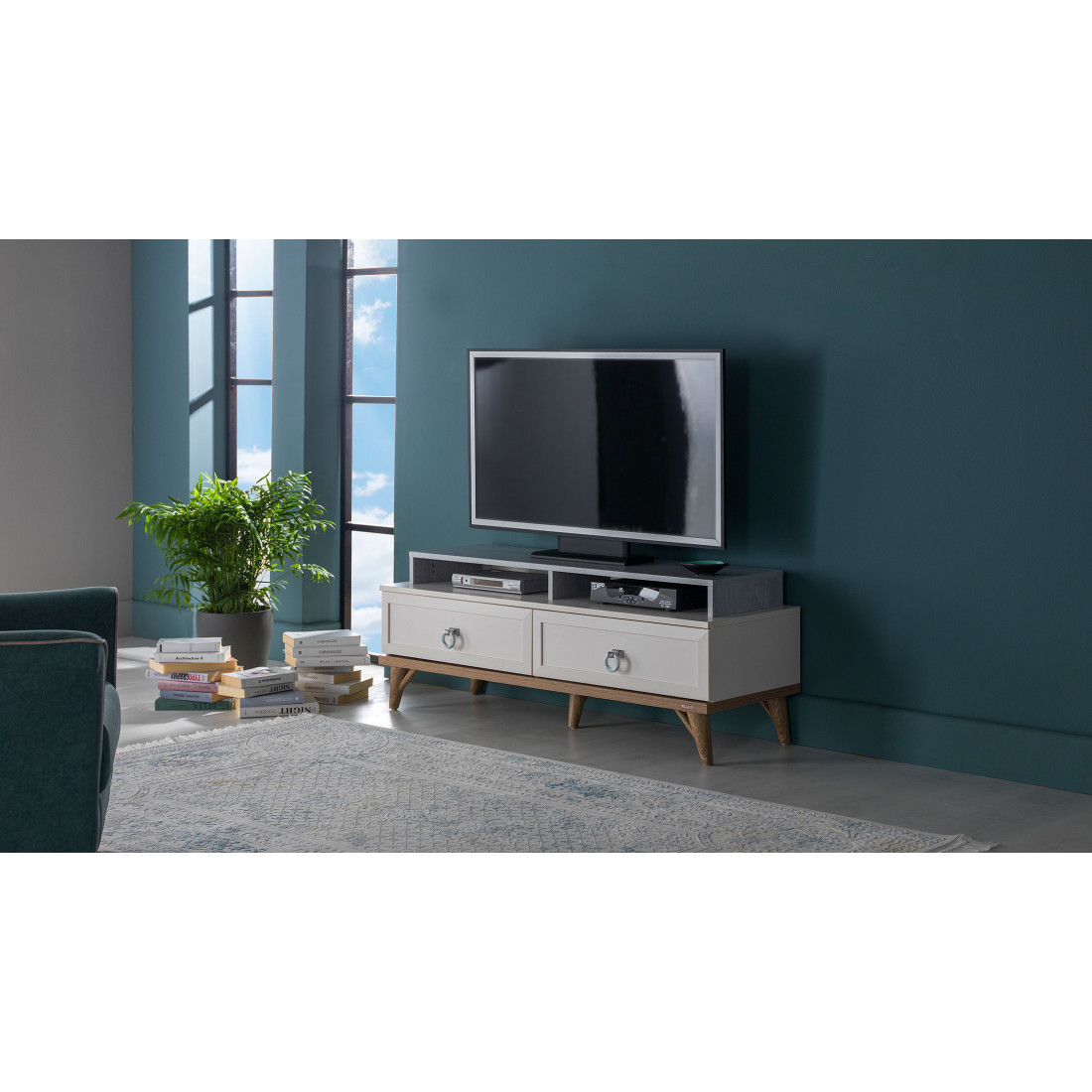 ТВ-тумба Bellona Мавенна прекрасно подойдет для размещения большого плазменного телевизора или домашнего кинотеатра. Можно дополнить панелью и дополнительной тумбой.