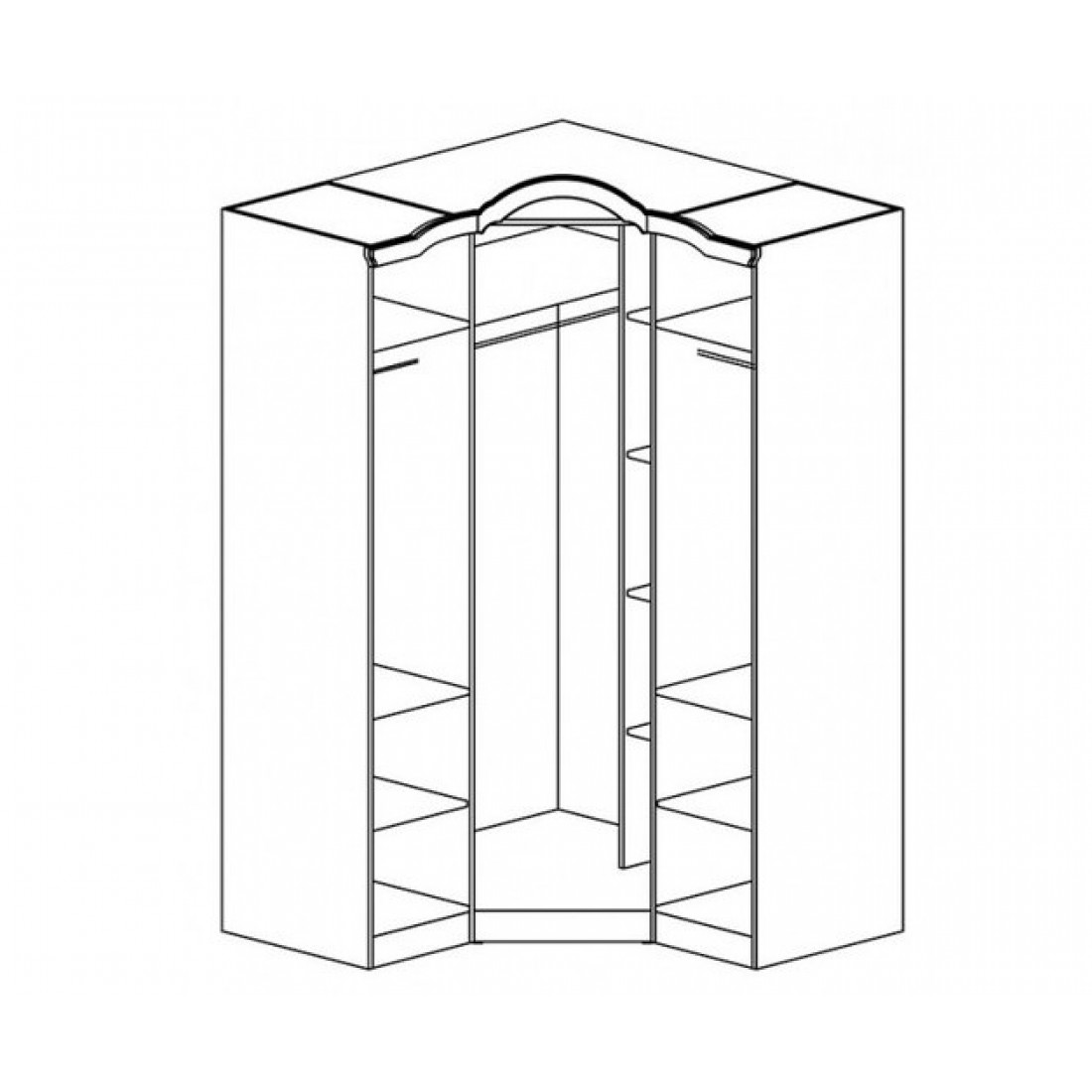 Угловой шкаф для одежды в спальню СП-002-18 серии Орхидея от фабрики Мебель-Неман – лучший образец грамотного обустройства свободного угла комнаты. Благодаря эргономичной конструкции, при сохранении максимума из существующего пространства спальня приобретает вместительный гардероб из трех независимых шкафов. Купить угловой плательный шкаф сразу в комплекте с двумя стильными пеналами можно по недорогой цене, в трех вариациях разных оттенков.